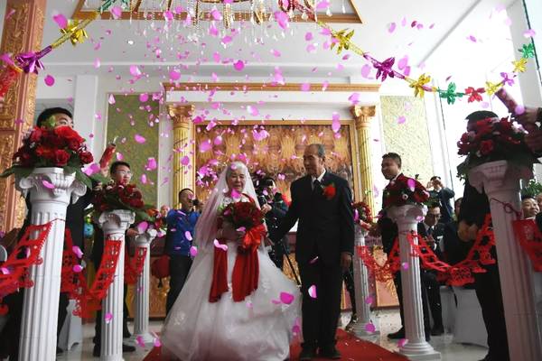 婚禮現(xiàn)場(chǎng),這對(duì)一輩子共患難、同甘苦的老夫妻,笑得那樣甜,那樣暖……