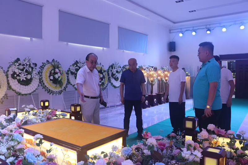 謝局長認(rèn)真查看骨灰告別禮儀廳,無煙焚燒區(qū),節(jié)地生態(tài)葬,銷售價(jià)格和服務(wù)狀況。